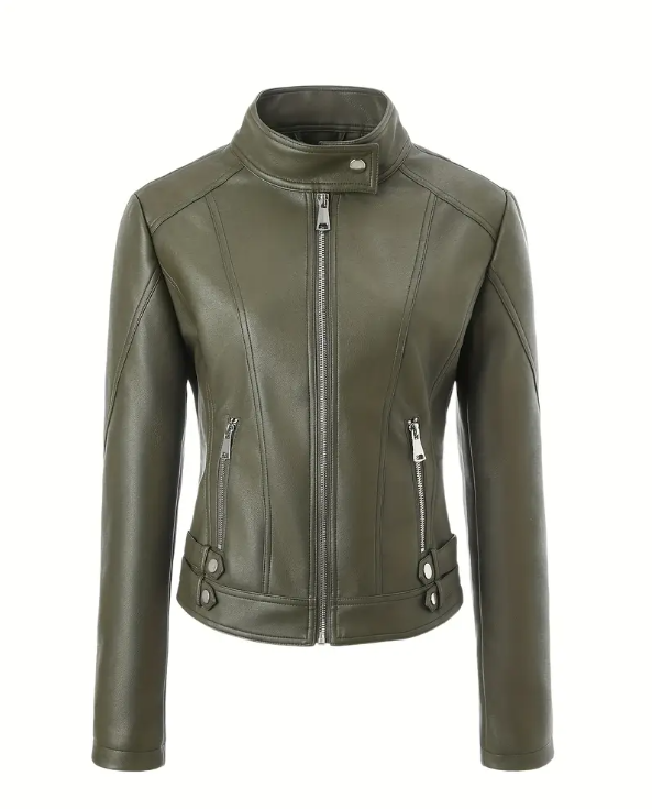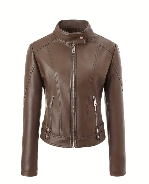 Step into sleek sophistication with the Brenda Leather Jacket – the perfect balance of modern style and everyday versatility. The slim-fit cut flatters your shape, while the stand collar and zipper front add a polished, contemporary edge. Lightweight yet durable, it’s easy to layer over anything from casual tees to evening dresses.