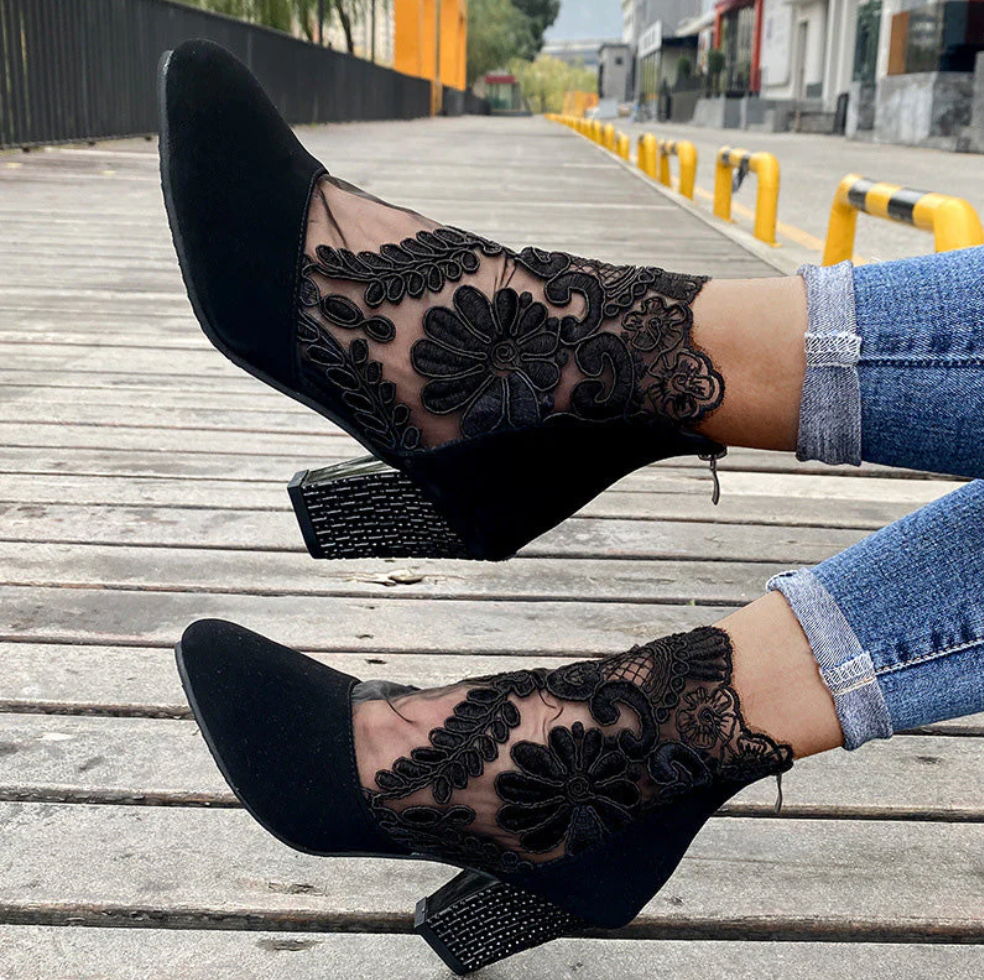 Tired of high heels that leave your feet sore or cause discomfort? The Ebony are designed with orthopaedic-friendly support, a breathable mesh upper, and delicate floral lace — giving you elegance, stability, and all-day comfort. Ideal for summer events, garden parties, or evenings when you want to feel confident, polished, and supported.