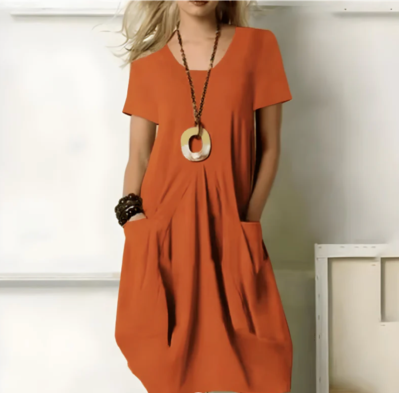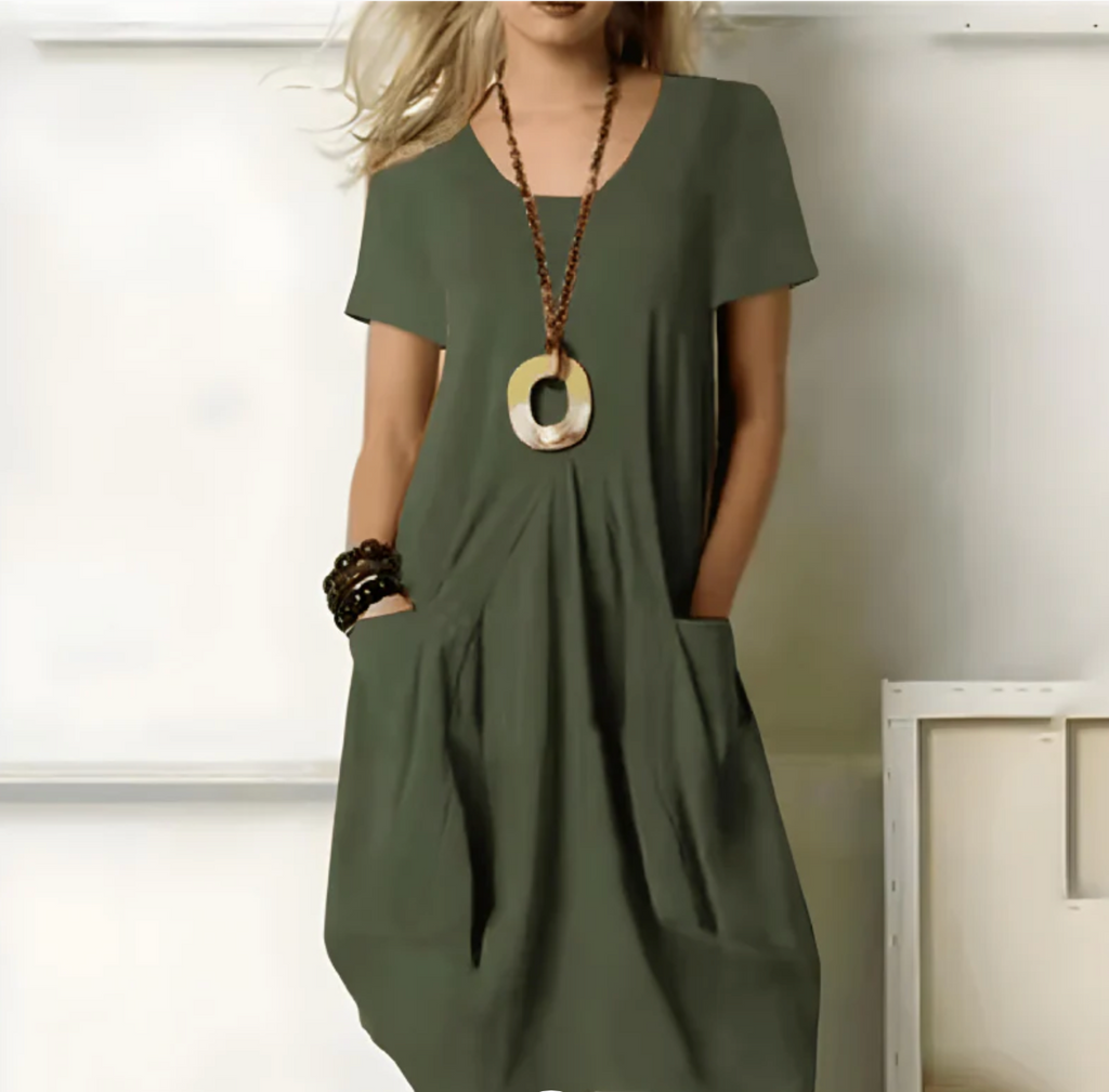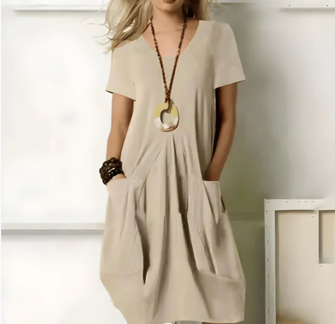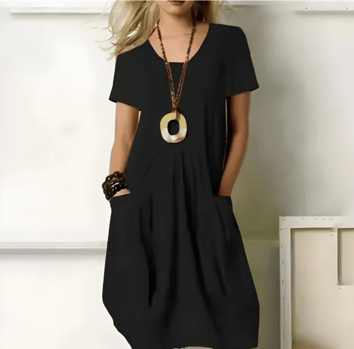 Tired of dresses that pinch or cling around your waist? The Gwen Dress glides over your midsection with gentle tummy coverage, made from soft, breathable fabric - giving you a flattering silhouette, effortless elegance, and all-day comfort. Perfect for moments when you want to feel polished, poised, and comfortable without restriction.