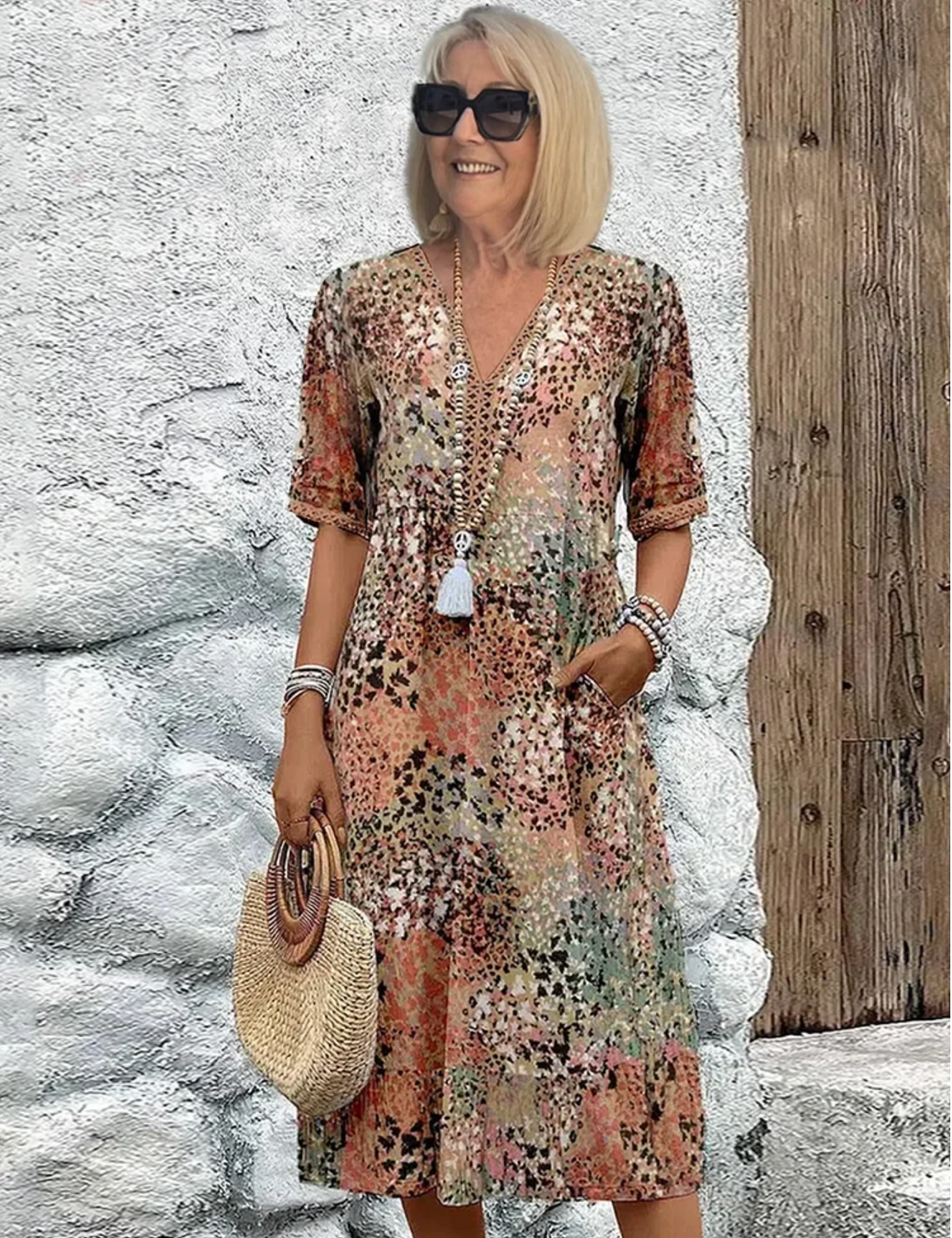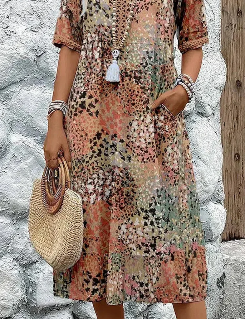 Step into carefree comfort with the Joelle Dress — a breathable midi that flatters your shape without clinging or squeezing. Its flowy silhouette smooths over your tummy and enhances your natural curves, giving you a confident, relaxed fit you’ll love all day. Whether you're heading out for brunch or enjoying a quiet coffee on the patio, this piece adds easy charm to any moment.