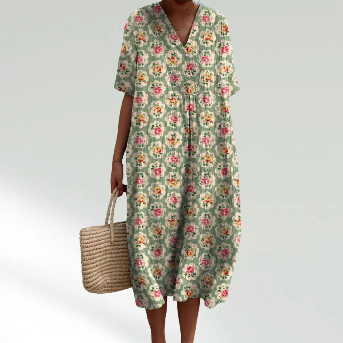 Step into relaxed charm with the Kenzy Dress — a light and airy favorite designed for real-life ease. Made for sunny mornings and spontaneous plans, this floral dress flatters your shape with a forgiving fit that never clings. The soft, breathable fabric keeps you cool and comfortable through coffee runs, errands, or catching up with friends.