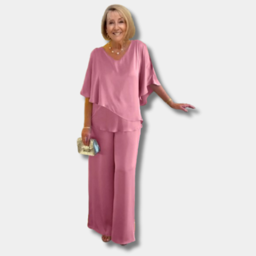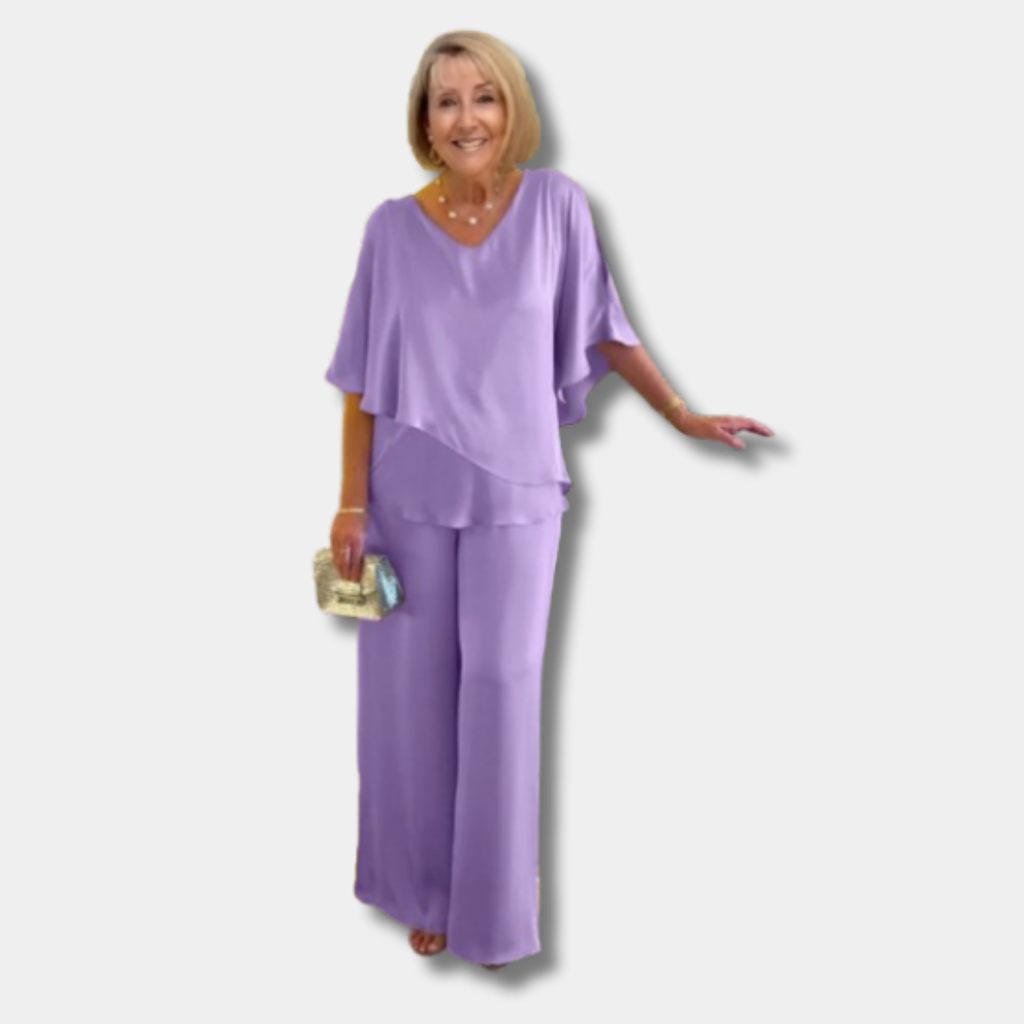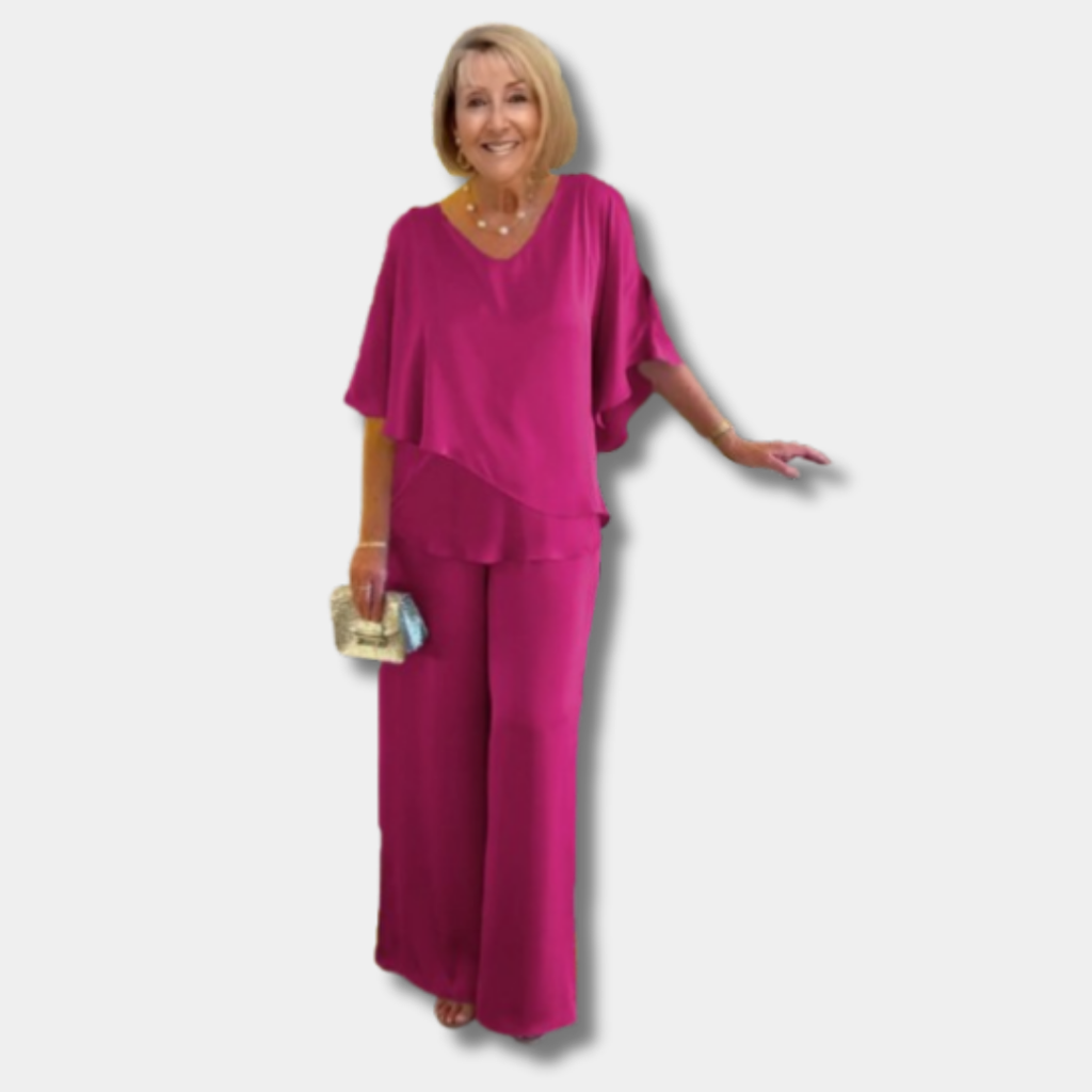 Step into confident ease with this Soft Luxe Two-Piece Set, designed to move with you and flatter your shape without clinging. With its soft drape, wide-leg pants, and relaxed fit, this everyday set offers gentle tummy coverage and effortless comfort. Whether you're heading out for coffee, running errands, or enjoying a laid-back lunch, this look brings casual polish and comfort to your day - no effort required.