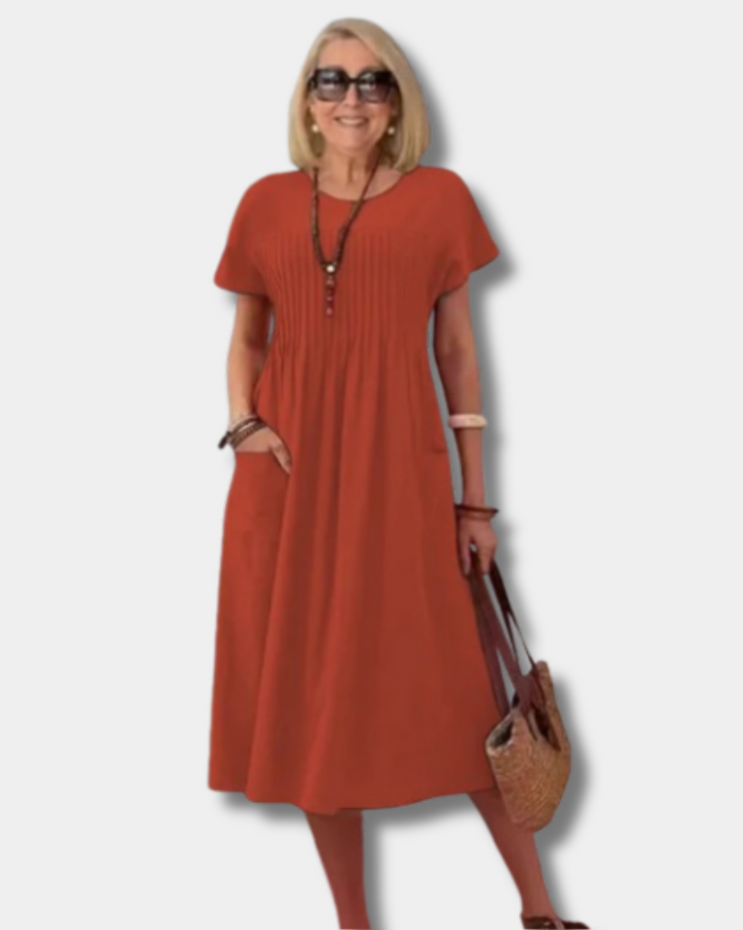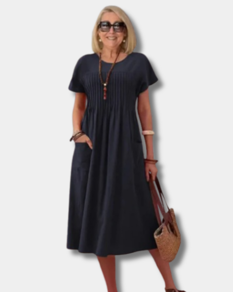 Step into comfort with the Marilyn Dress, your new go-to for easy days and effortless style. Designed with a classic crew neckline, practical pockets, and a softly flared A-line silhouette, this dress flatters your figure while keeping things relaxed and fuss-free. Whether you're running errands, enjoying a sunny stroll, or meeting friends for coffee, Mara moves with you and keeps you feeling confident and comfortable from morning to evening.