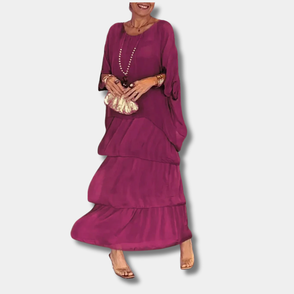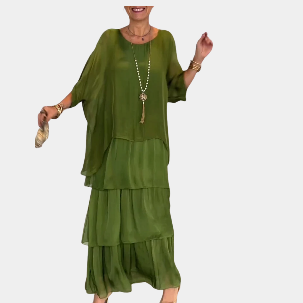 Step into graceful comfort with this flowing maxi dress designed to move beautifully and flatter where it matters. Made from soft, breathable fabric with a light drape, the Marlene dress offers gentle tummy coverage and a loose silhouette that feels easy—not tight. From morning coffee runs to dinner invites, it delivers confident, all-day comfort without ever clinging or fussing.