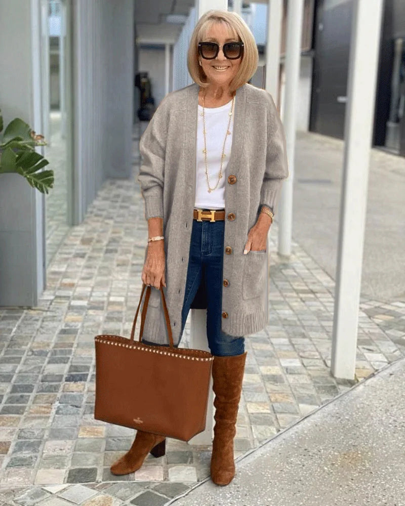 Step into gentle ease with the Mila Cardigan - designed for subtle warmth and timeless appeal. Its clean lines and open-front design create a relaxed silhouette that feels familiar and effortless. A versatile layer you’ll reach for again and again, bringing soft comfort to any moment—season after season.