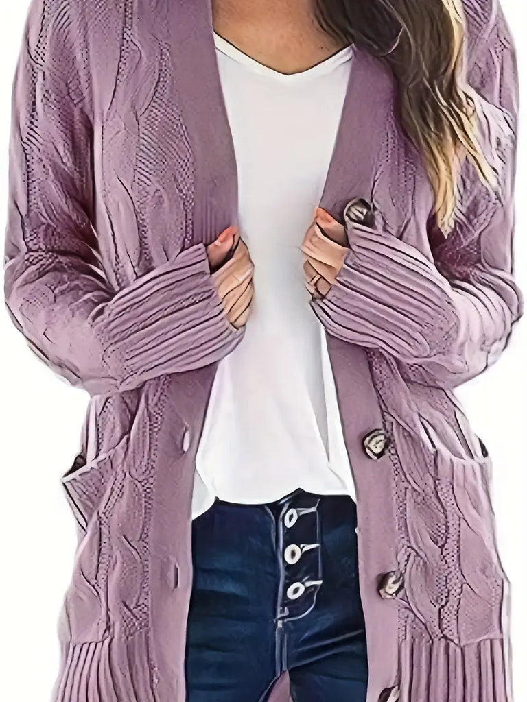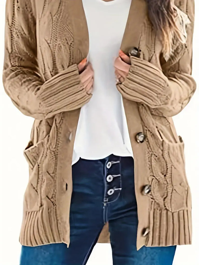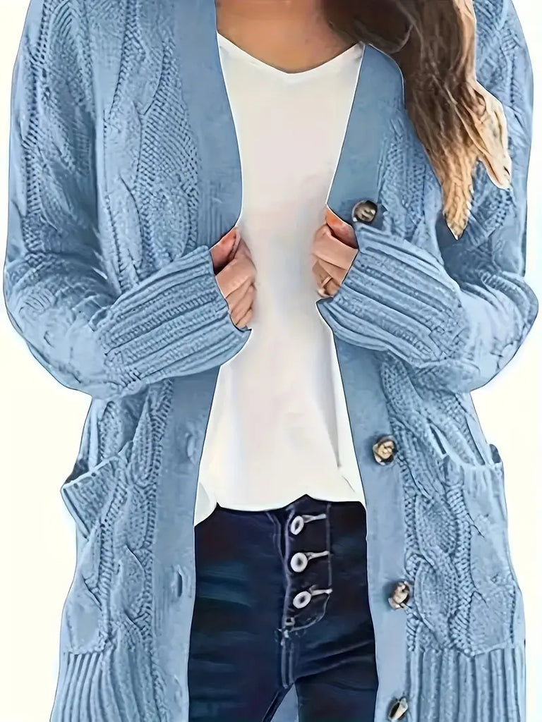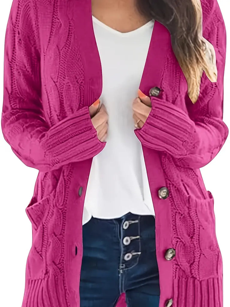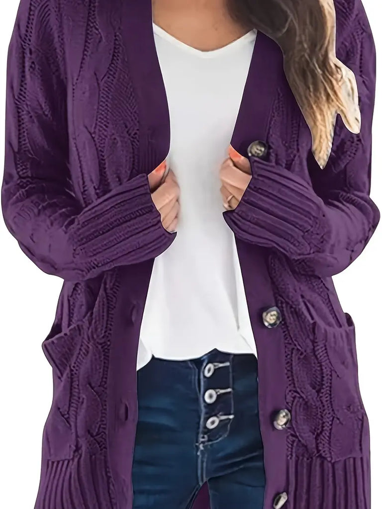 Step into softness with the Piper Cardigan—made for women who want warmth without the squeeze. Its stretchy knit fabric drapes gently over your curves, easing pressure at the arms and shoulders while giving you breathable comfort that won’t itch. Button details and a classic cable-knit texture add timeless style, making it a layer you’ll wear indoors, outdoors, and everywhere in between.