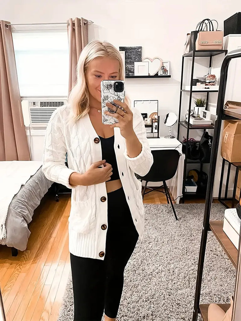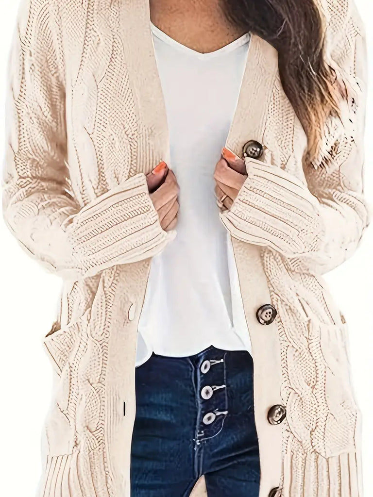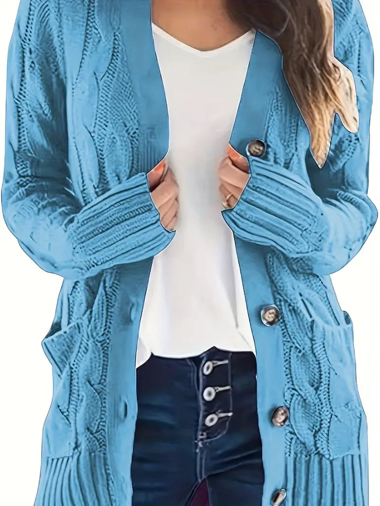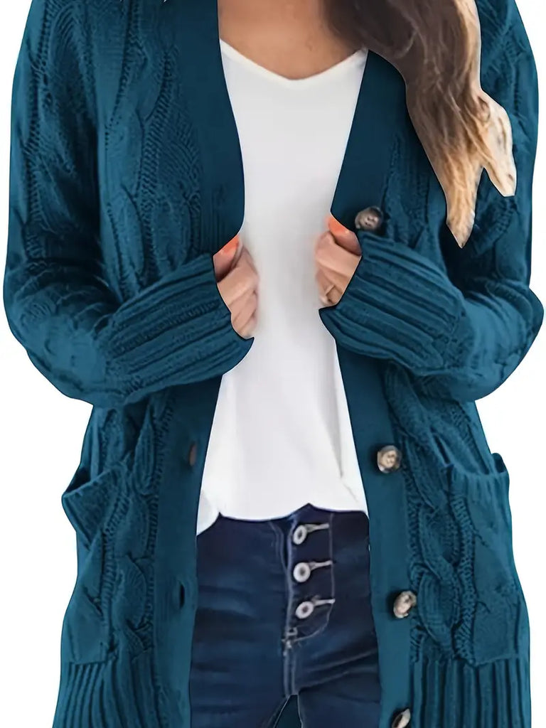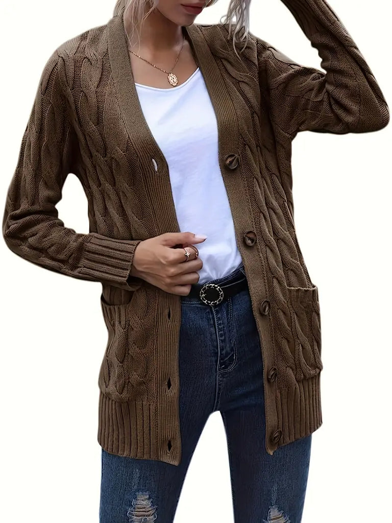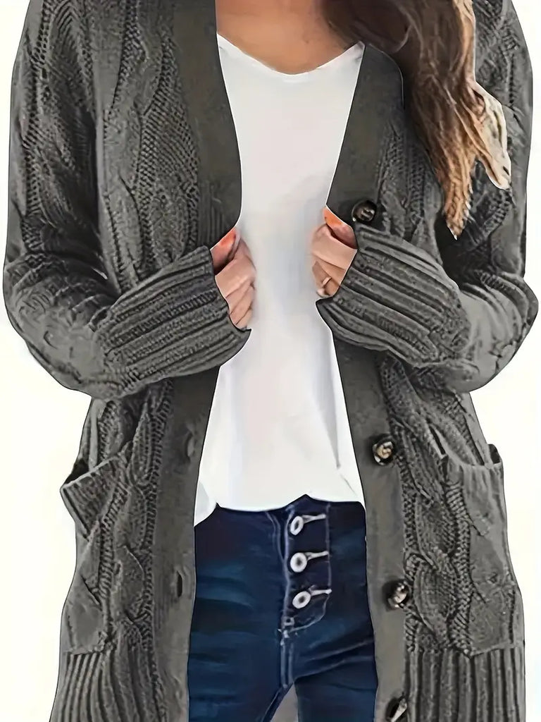 Step into softness with the Piper Cardigan—made for women who want warmth without the squeeze. Its stretchy knit fabric drapes gently over your curves, easing pressure at the arms and shoulders while giving you breathable comfort that won’t itch. Button details and a classic cable-knit texture add timeless style, making it a layer you’ll wear indoors, outdoors, and everywhere in between.