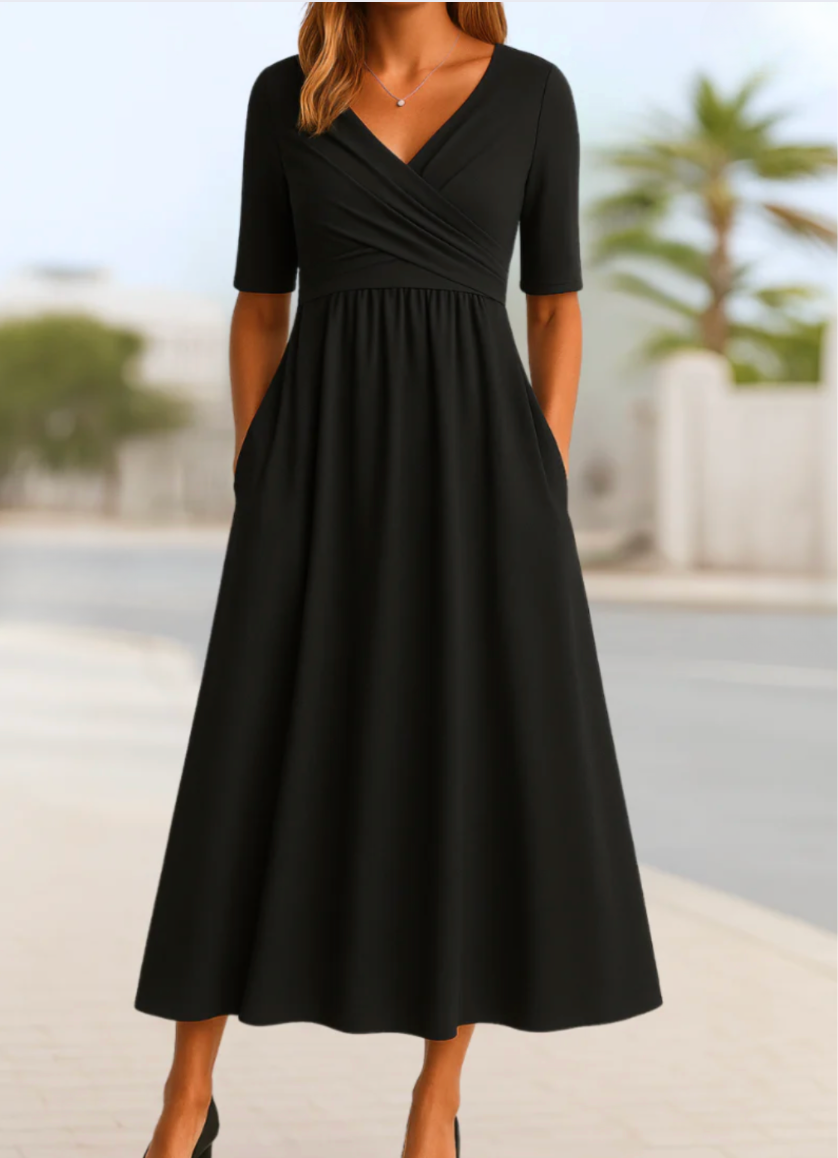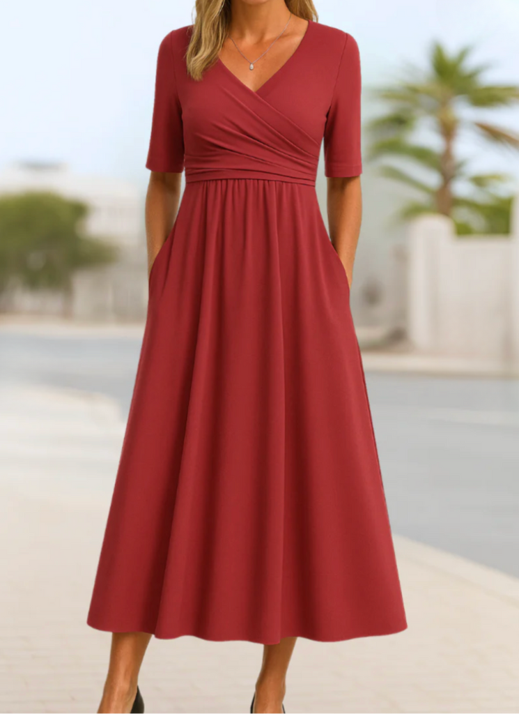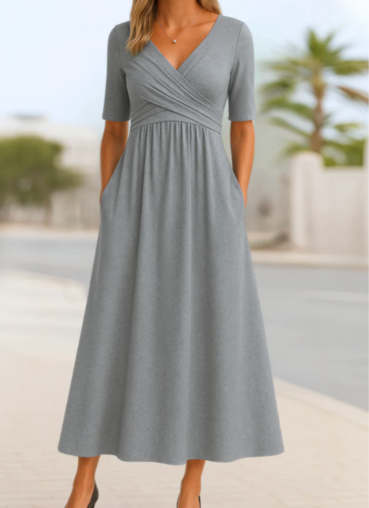 Tired of dresses that cling in all the wrong places or lose their shape halfway through the day? The Posie Dress is designed with a soft, flowing crossover bodice and forgiving fabric that gently skims your figure - offering tummy-friendly coverage without any bulk. Lightweight, breathable and beautifully draped, it’s the go-to dress that moves with you and keeps you at ease - from a relaxed morning coffee to a breezy afternoon catch-up with friends.