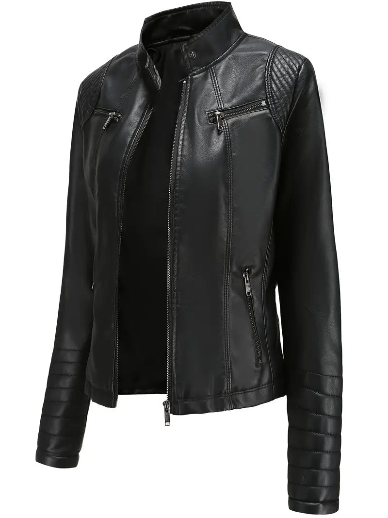 Step into bold, modern style with the Riley Leather Jacket, your go-to piece for adding instant edge to any outfit. Featuring quilted shoulder and sleeve panels, a sleek stand collar, and a streamlined zipper front, Riley blends moto-inspired design with everyday wearability. Lightweight yet durable, it layers effortlessly over tees, sweaters, or dresses, making it perfect from morning coffee runs to late-night dinners.