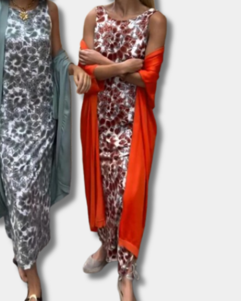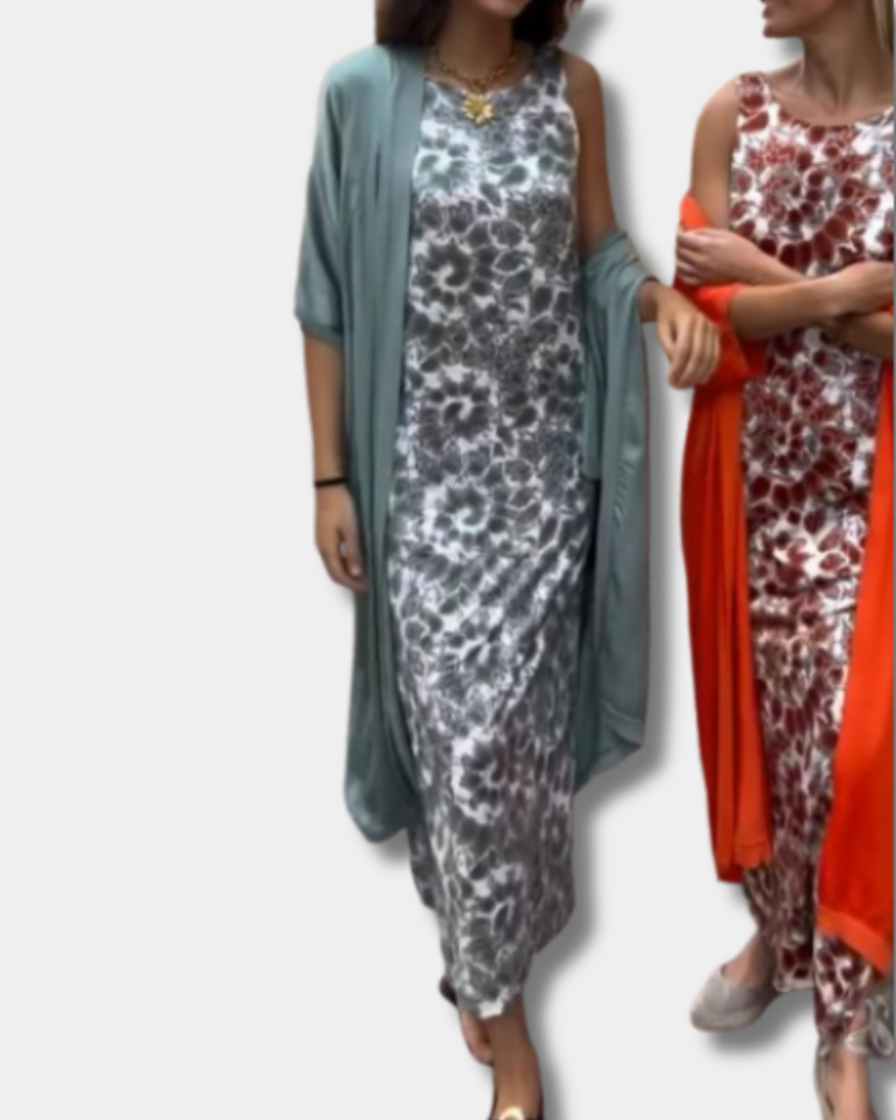 Step into graceful ease with the Talia Set – designed for the woman who values both beauty and comfort in every outfit. Featuring a flowing maxi dress paired with a lightweight matching jacket, this two-piece ensemble offers a polished, breathable look perfect for warm days and travel-ready moments. Whether you’re exploring a new city, strolling by the sea, or enjoying an evening dinner outdoors, Talia moves with you – soft, flattering, and effortlessly stylish from morning to night.