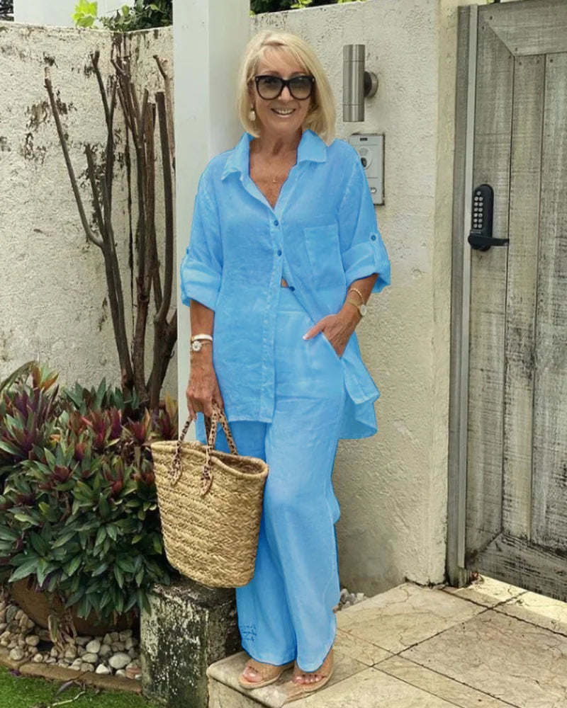Step into everyday confidence with this Polo Lounge Set. With its soft long-sleeve top and relaxed-fit trousers, it flatters without clinging and keeps you comfortable all day. From errands to lunch dates, this breathable outfit moves with you and offers light tummy coverage—so you feel polished, relaxed, and ready for anything.