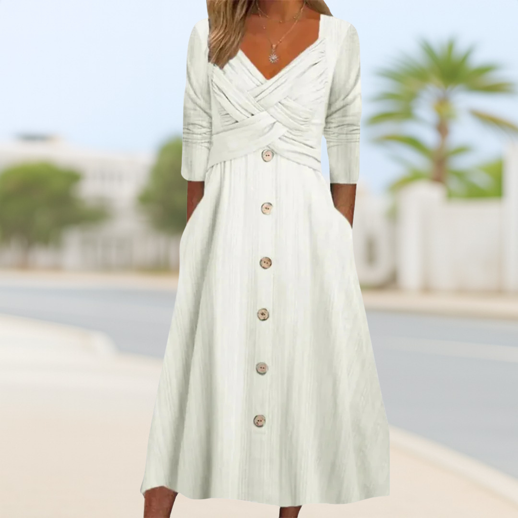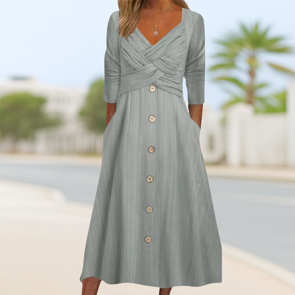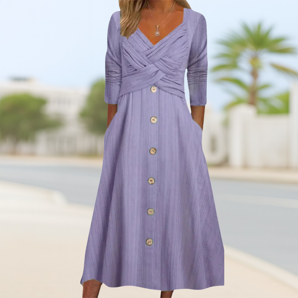Step into graceful ease with the Virginia Dress — a flattering, everyday maxi designed to move with you and flatter your shape without clinging. The gently gathered criss-cross bodice defines your waist while the flowing skirt offers breezy comfort from day to night. Whether you're heading to brunch, running errands, or meeting friends for coffee, this is the dress that makes it easy to look and feel your best.